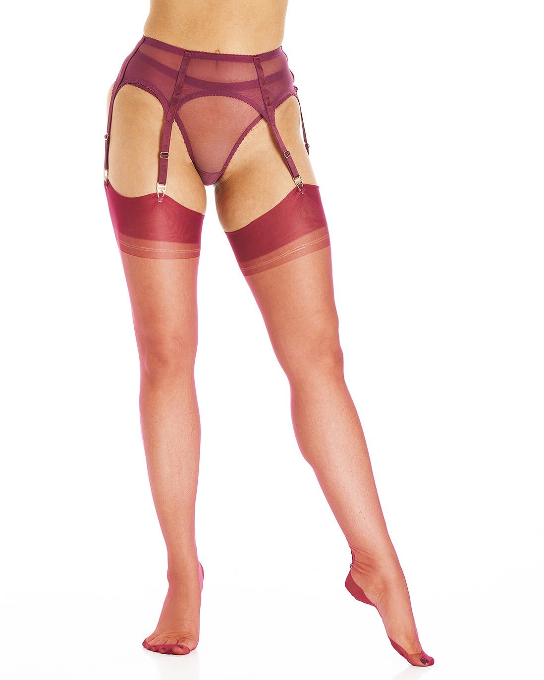 Full Contrast Reinforced Heel and Toe Stockings in Black Cherry Wine – Rich and Dark Crimson Red.