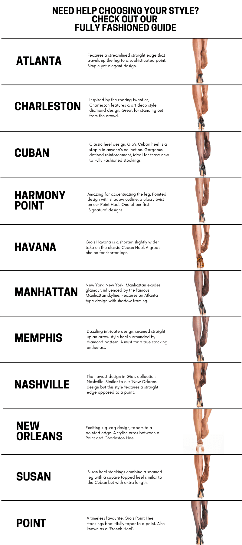 Don’t settle for ordinary stockings. Step into the dazzling elegance past eras with our Fully Fashioned Charleston Heel Stockings. Infuse your outfits with timeless style and sophistication to make every look extraordinary.