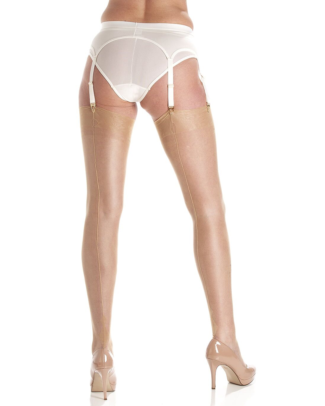 Fully Fashioned Charleston Heel Stockings in Gio Classic Colours – Black, Bronze, Natural, Chocolate, Barely Black.