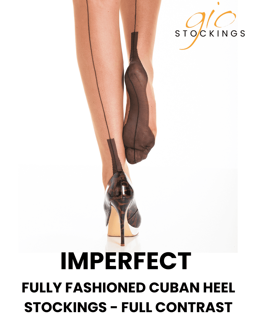 Elevate your style with our best-selling Fully Fashioned Cuban Heel Stockings! These exquisite stockings define glamour and sophistication. Featuring a striking square-shaped Cuban heel and a delicate 15 denier finish, they are the perfect complement to any outfit. Gio’s Full Contrast stockings are designed with a striking black welt, seam, foot, and heel. The sharp contrast adds a dramatic flair, making them the ideal choice for those who love to make a statement.