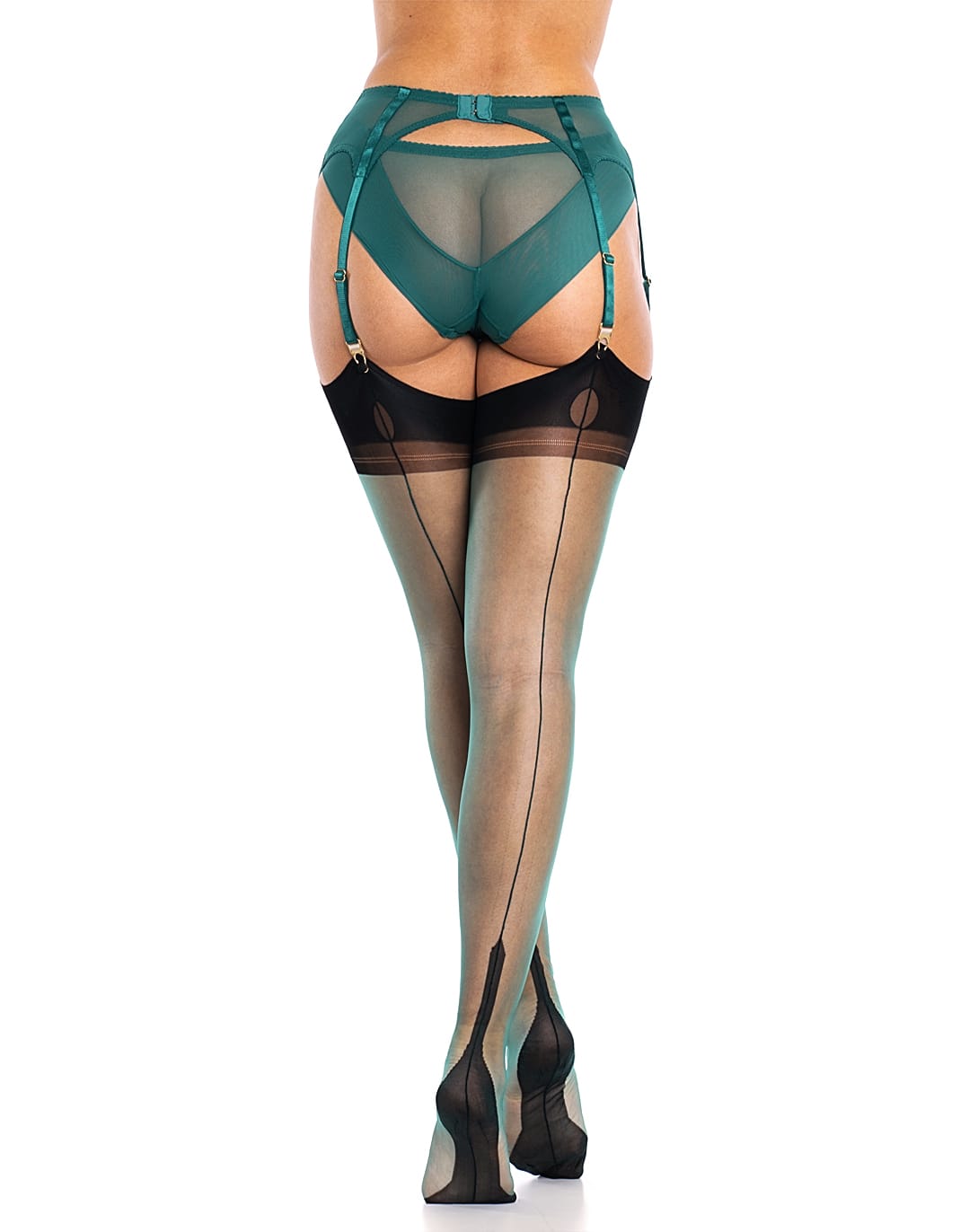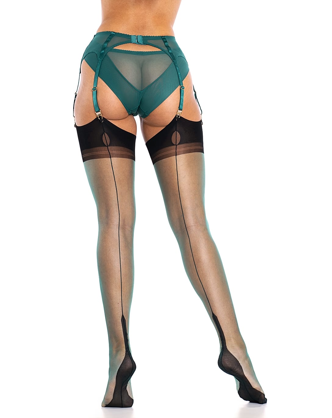 Limited Edition, Fully Fashioned Full Contrast Atlanta Heel Stockings in Jade Green – Beautiful Jewel Tone Green