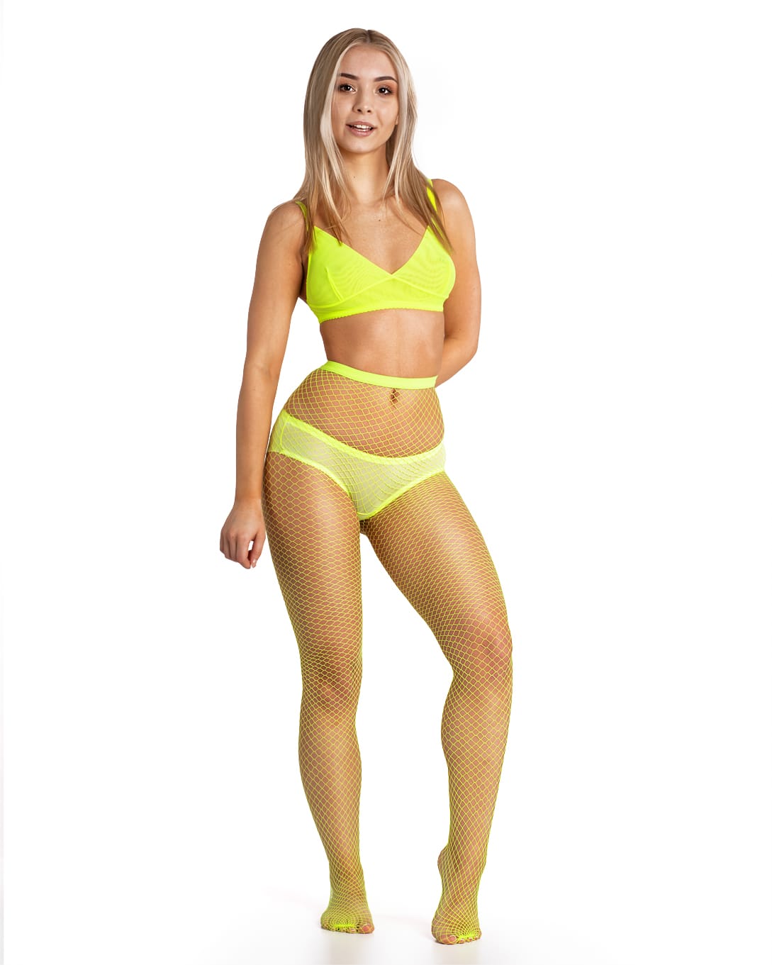 Gio – Marseille Fishnet Tights in Neon Yellow