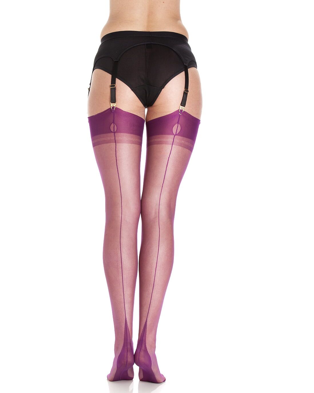 Limited Edition, Fully Fashioned Point Heel Stockings in Plum – Deep Purple with Red Hints.