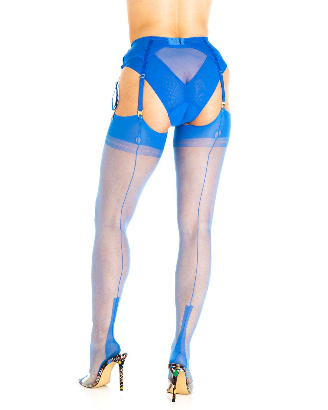 Limited edition, Fully Fashioned Susan Heel Stockings in Tantalizing Topaz – Topaz Gemstone Deep Blue.